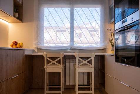 En este proyecto buscábamos modernizar la cocina, hemos utilizado materiales con tonalidades neutras y madera para darle calidez a la cocina.
